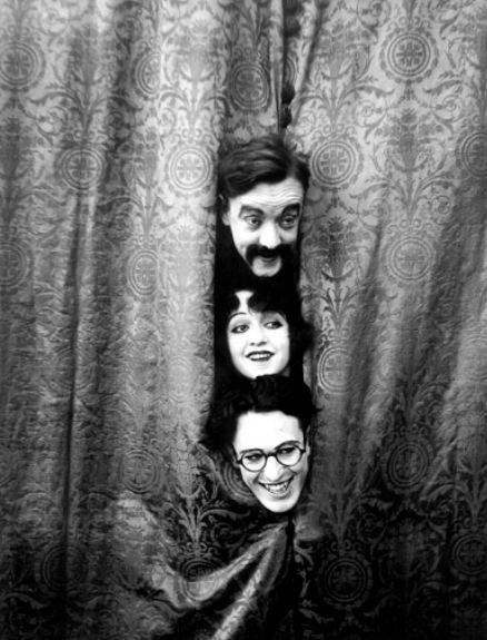 An early publicity shot (probably 1918, judging by his glasses) of (from top) Harry “Snub” Pollard, Virginia “Bebe” Daniels, and Harold Lloyd. These three worked together uninterrupted for over 4 years.